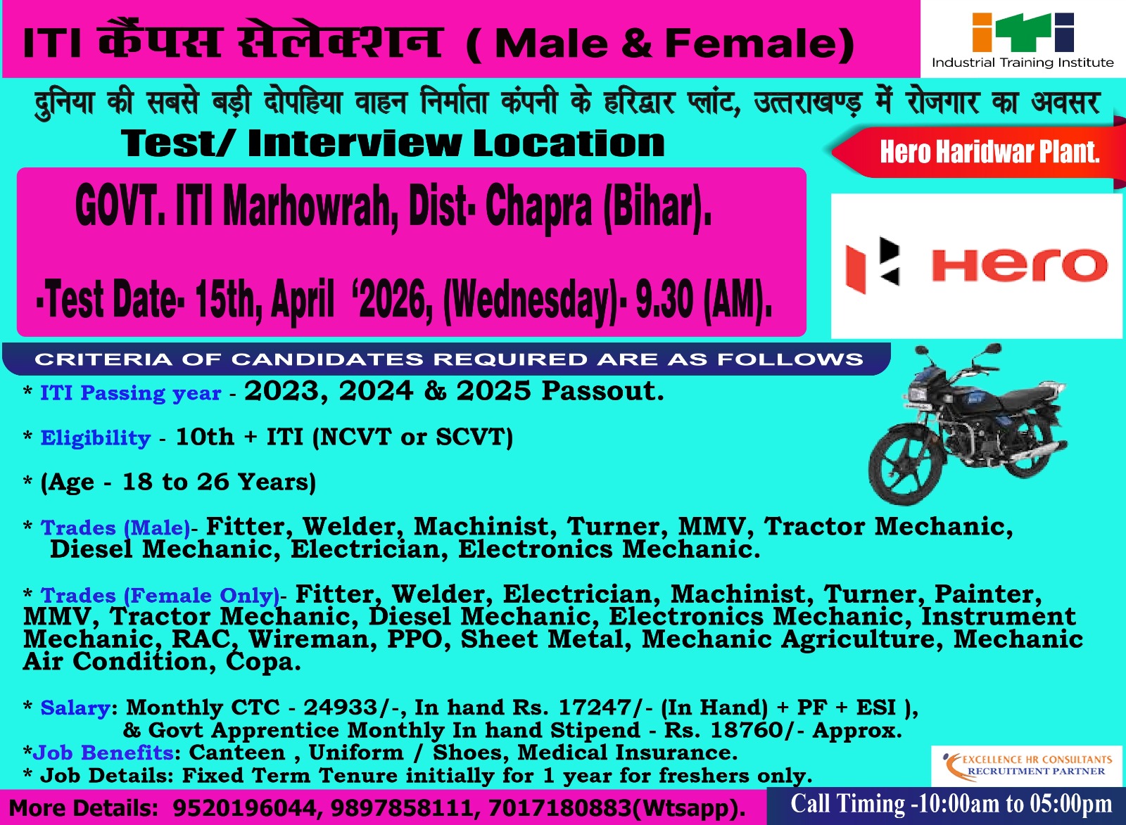 Hero MotoCorp Haridwar Recruitment | ITI Jobs | Haridwar Plant | New Bharati